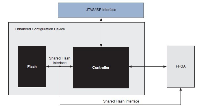 The Altera enhanced configuration EPF10K10LC84-4 is a single-device, high-speed, advanced configuration solution for very high-density FPGAs. The core of an enhanced configuration EPF10K10LC84-4 is divided into two major blocks: a configuration controller and a flash memory. The flash memory is used to store configuration data for systems made up of one or more Altera FPGAs. Unused portions of the flash memory can be used to store processor code or data that can be accessed via the external flash interface after FPGA configuration is complete. Table 1–1 summarizes the features of Altera configuration EPF10K10LC84-4 and the amount of configuration space they hold.